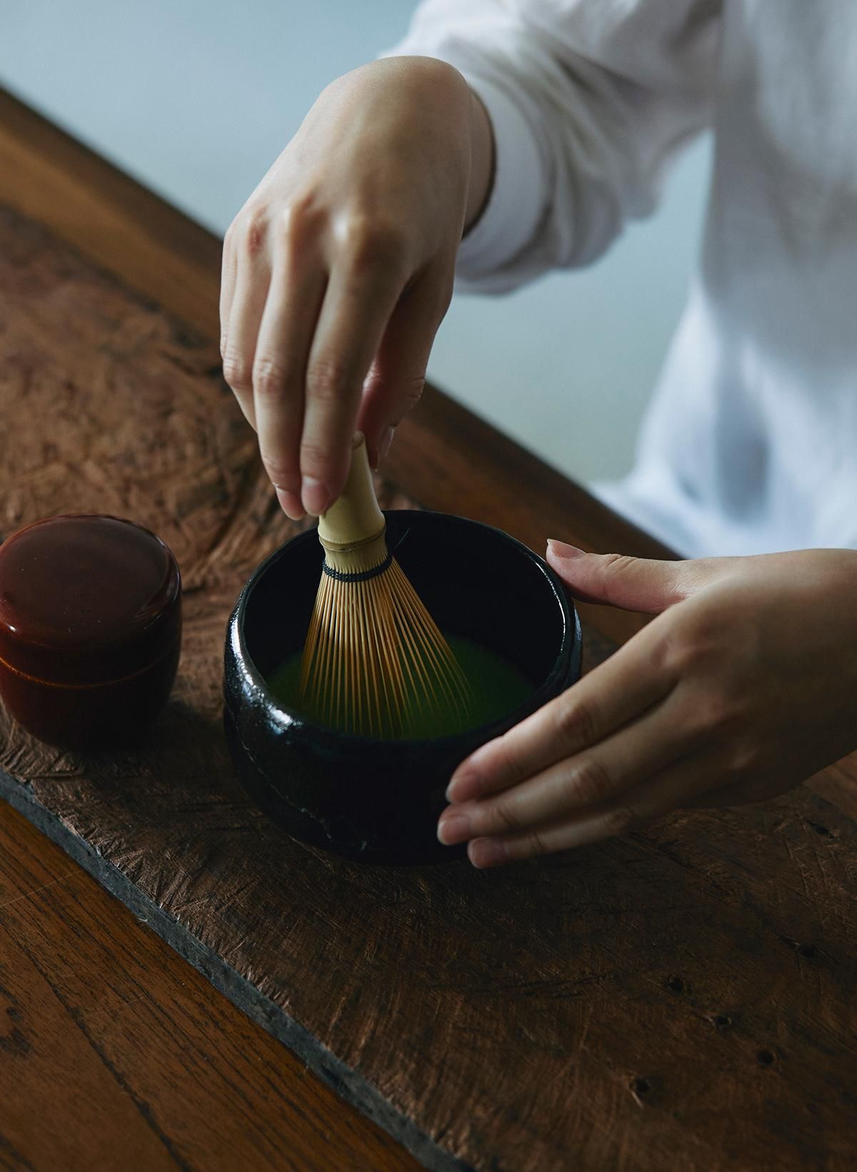 新緑を思わせる芳醇な香りと滋味深い味わいのおくみどりを使用。渋味、甘味、旨味のバランスも良く、長く続く余韻を楽しめる。丁寧石臼で引いた抹茶は美しい鮮緑色。
